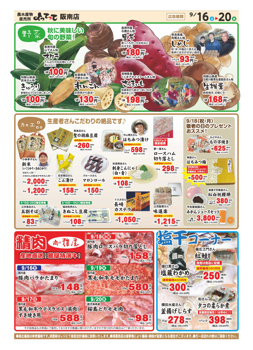「秋のお彼岸特集」開催!(阪南店)(終了しました)