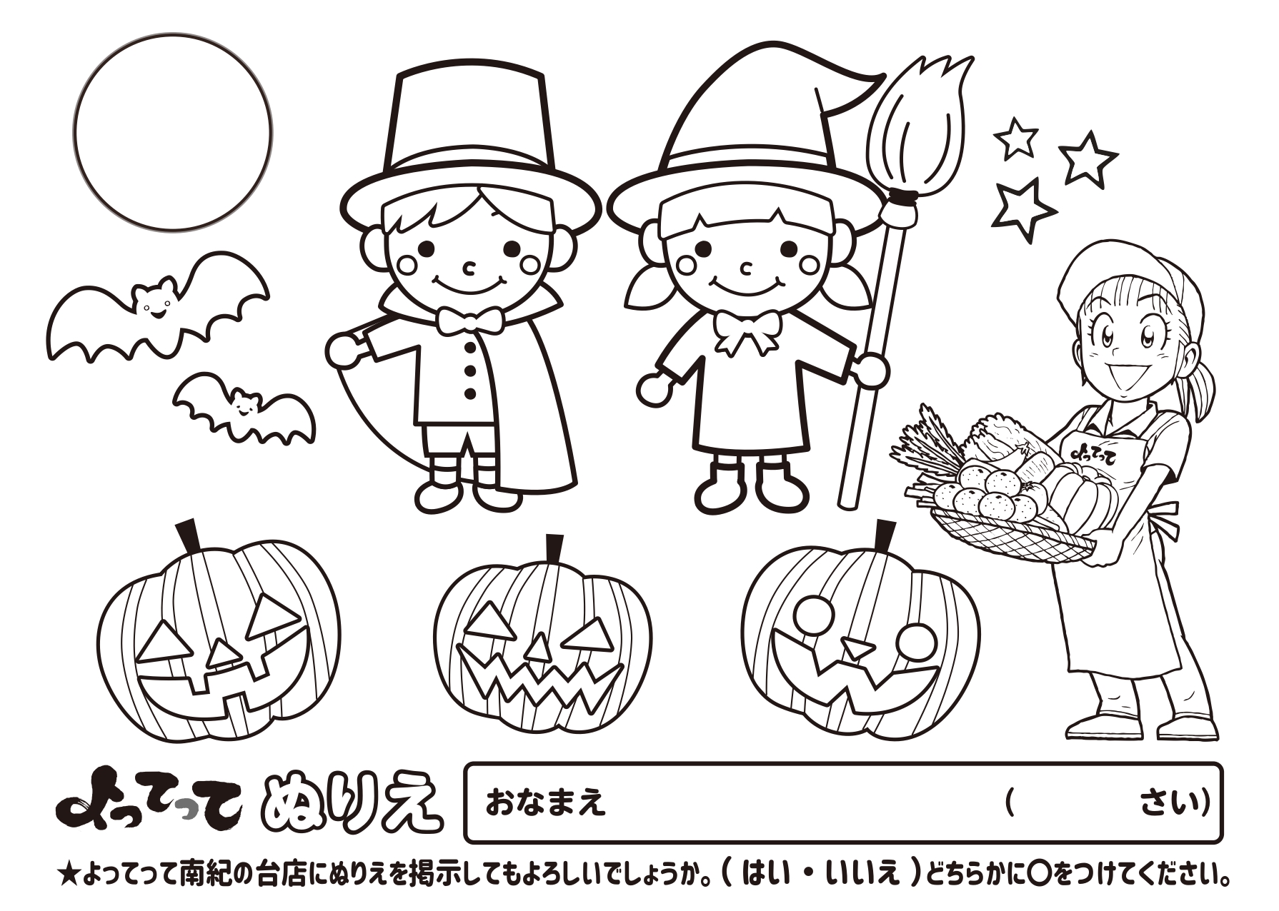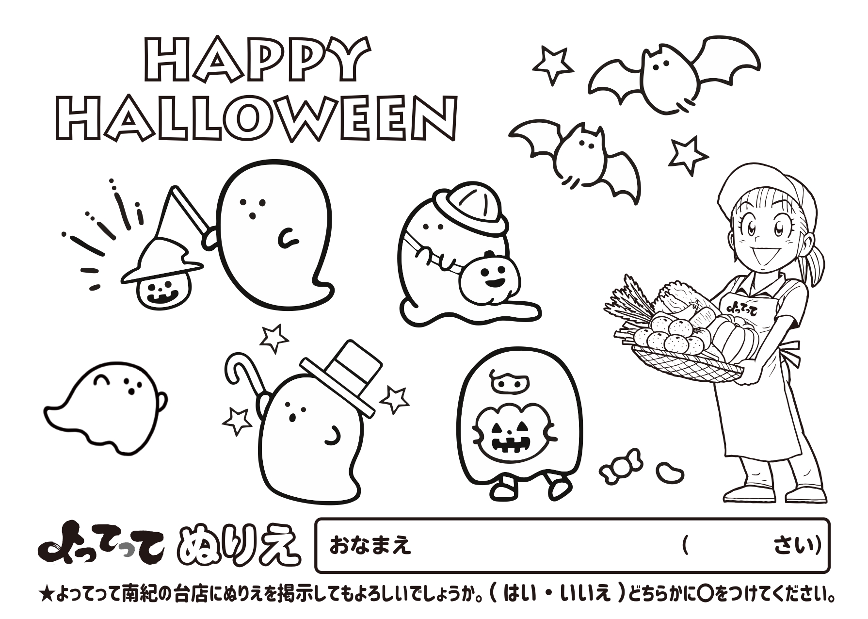 よってっての一部店舗では現在、ハロウィンのぬりえを大募集しております❗