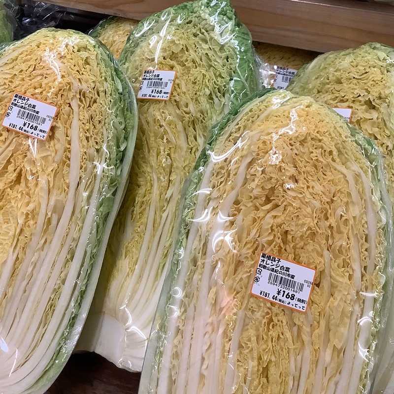 外葉は緑色ですが、中の葉がオレンジ色をしているオレンジ白菜です🥬