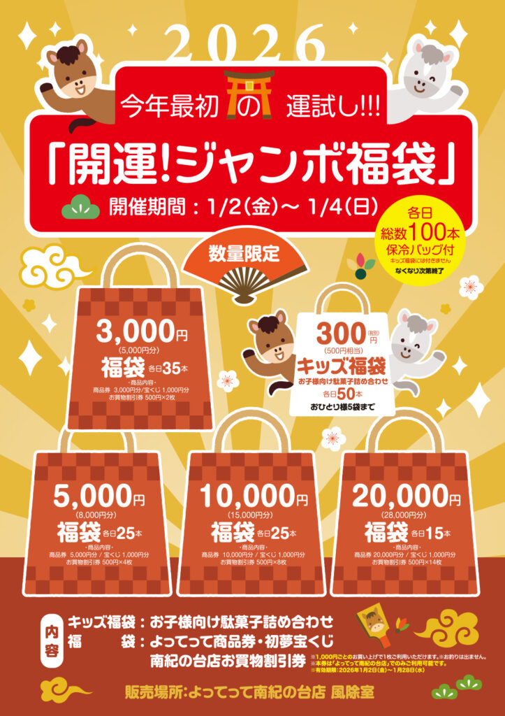 1月2日(金)~4日(日)まで毎日、福袋を100袋とキッズ福袋を50袋ご用意🎁なくなり次第終了となりますので、お早めにご来店ください😆