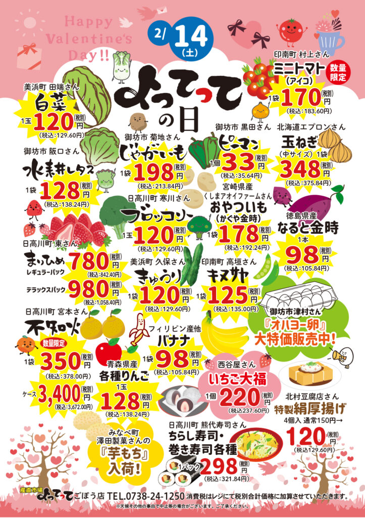 2月14日(土)は「よってっての日」開催!(ごぼう店)