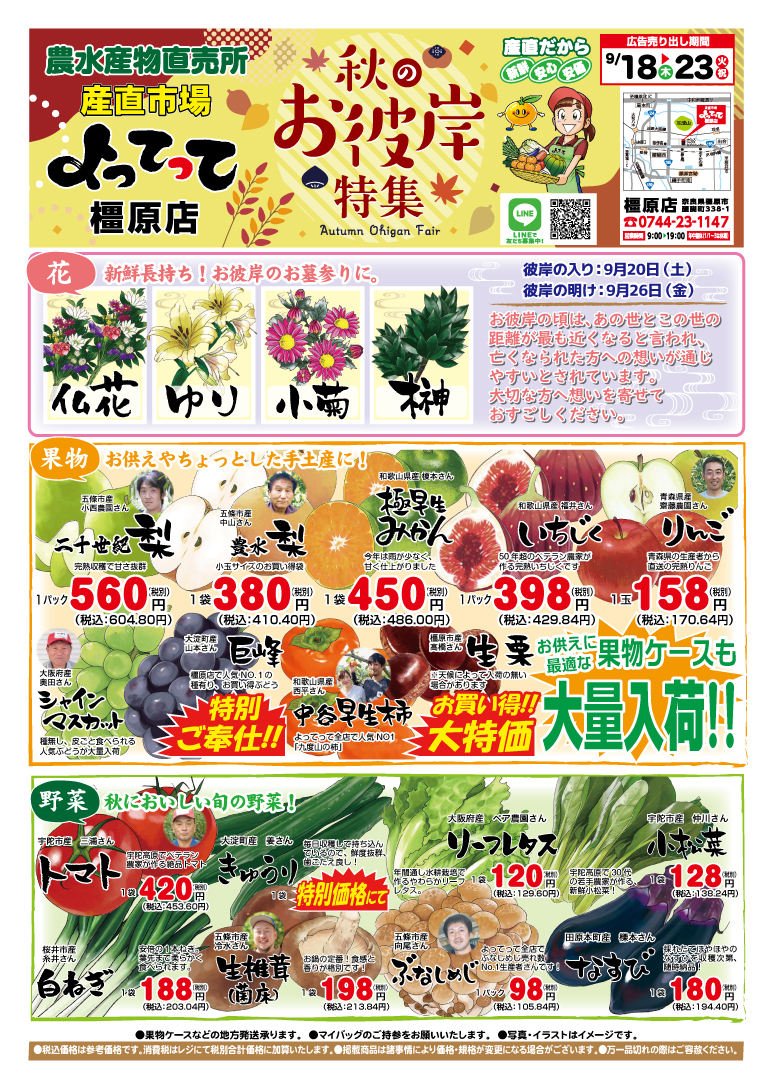 「秋のお彼岸特集」開催!(大和郡山店)(終了しました)