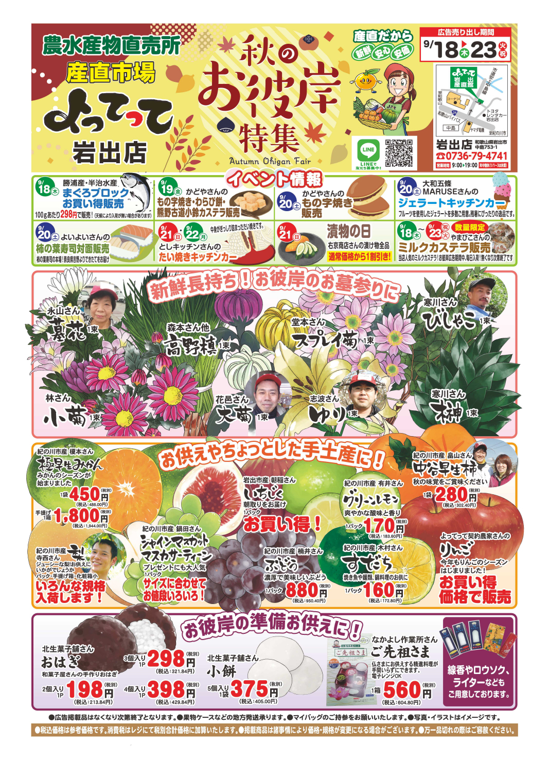 「秋のお彼岸特集」開催!(岩出店)(終了しました)