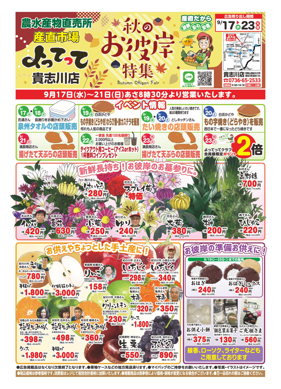 「秋のお彼岸特集」開催!(貴志川店)(終了しました)