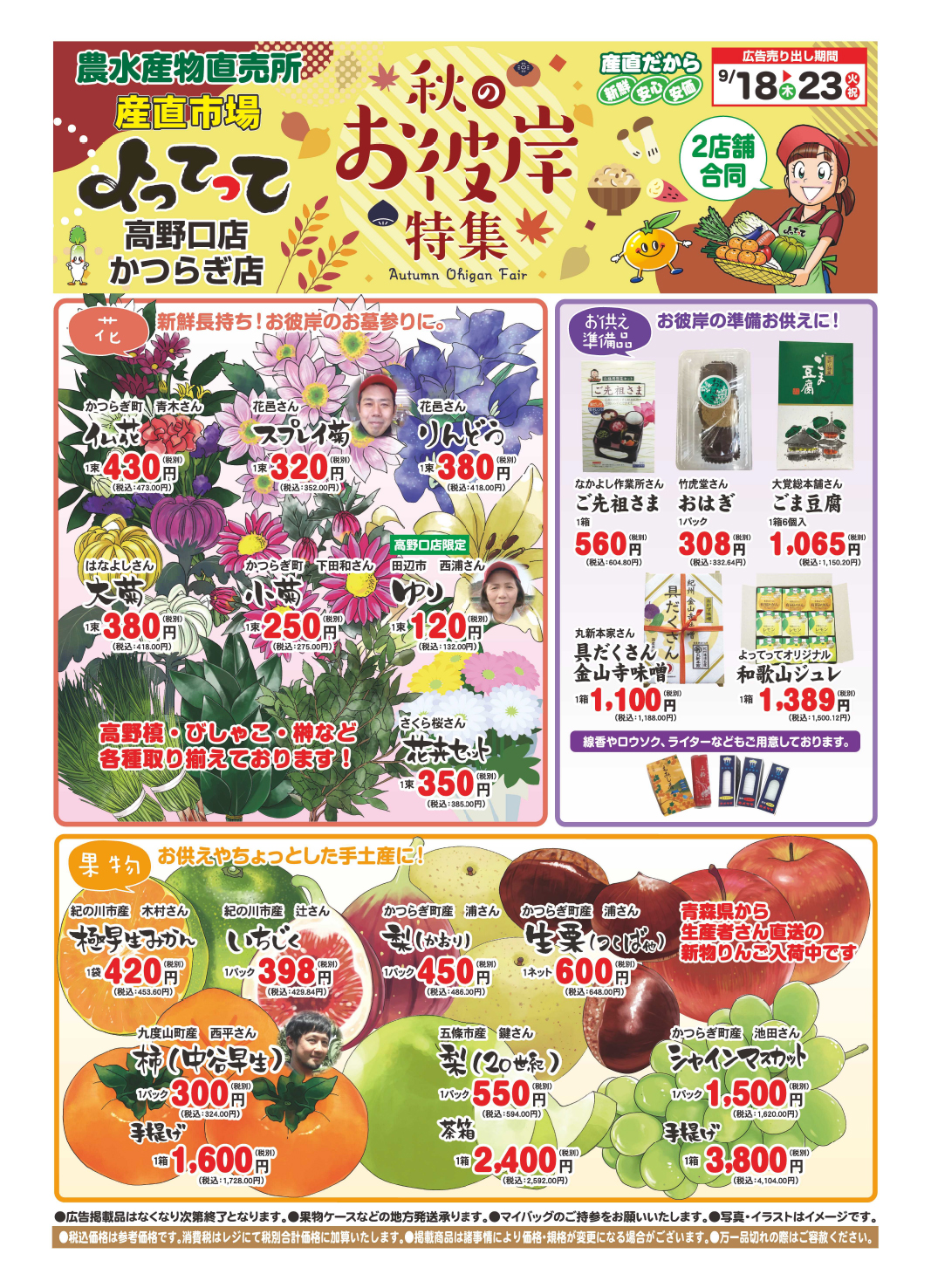「秋のお彼岸特集」開催!(高野口店・かつらぎ店)(終了しました)