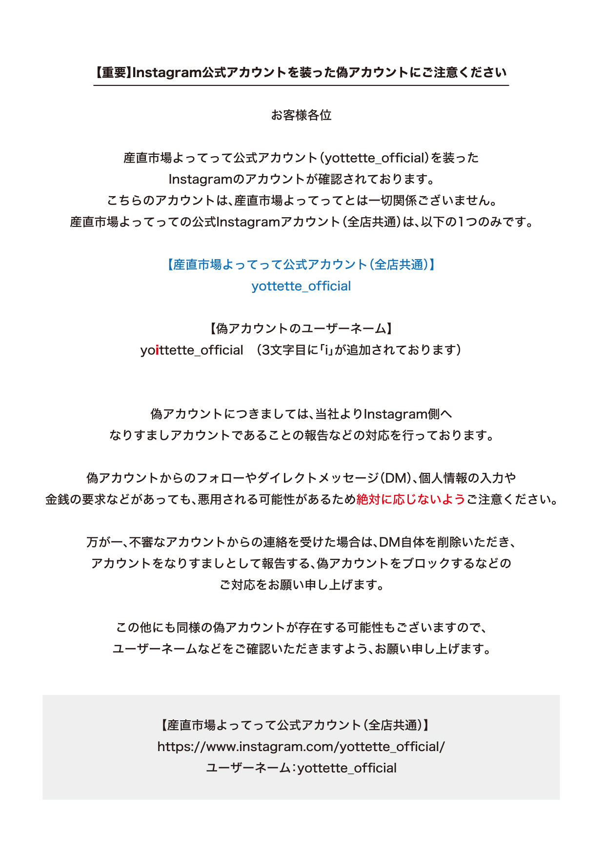 【重要】Instagram公式アカウントを装った偽アカウントにご注意ください