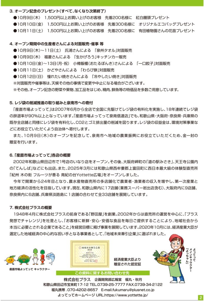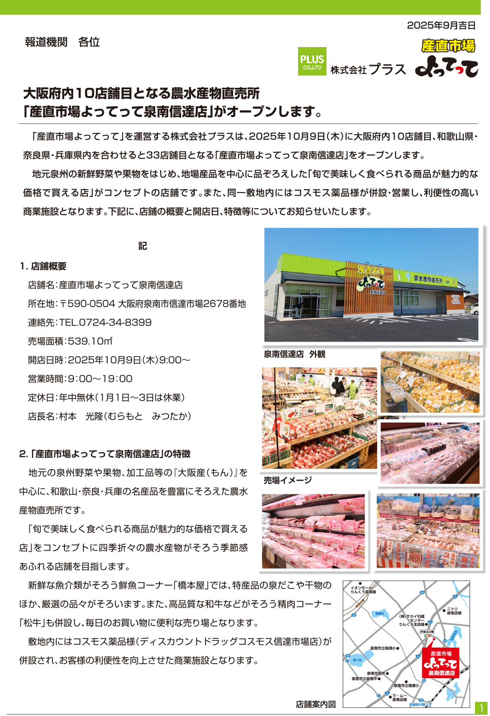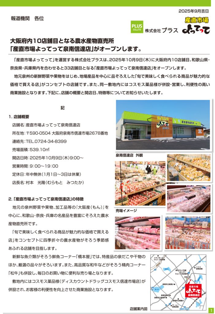 産直市場よってって泉南信達店 プレスリリースを公開しました。